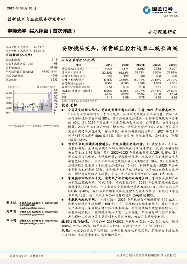 【国金证券】【20210805】国金证券-宇瞳光学-300790.SZ-安防镜头龙头,消费级监控打造第二成长曲线-24页