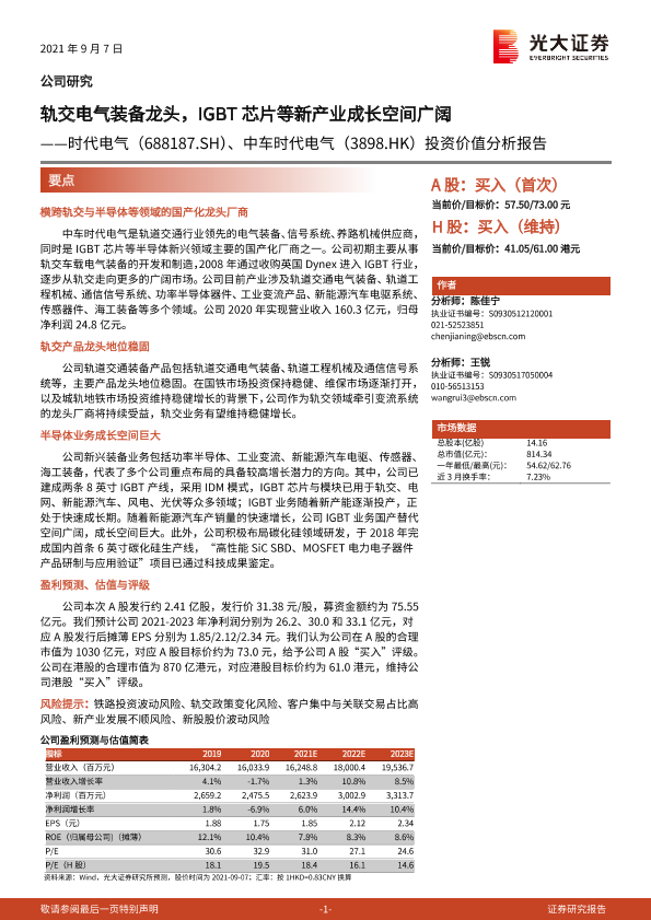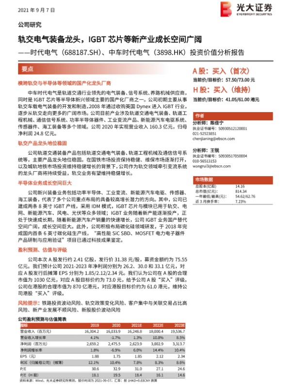 【光大证券】【20210907】20210907-光大证券-时代电气-688187.SH-投资价值分析报告:轨交电气装备龙头,IGBT芯片等新产业成长空间广阔-41页