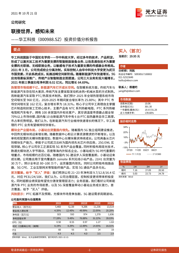 【光大证券】【20211021】联接世界,感知未来——华工科技(000988.SZ)投资价值分析报告-53页
