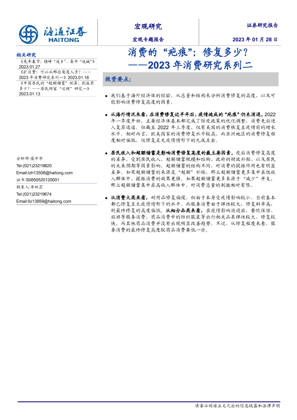 【海通证券】【20230128】2023年消费研究系列二:消费的“疤痕”:修复多少?-21页