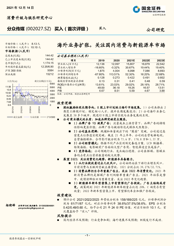 【国金证券】【20211214】分众传媒-002027.SZ-海外业务扩张,关注国内消费与新能源车市场-27页