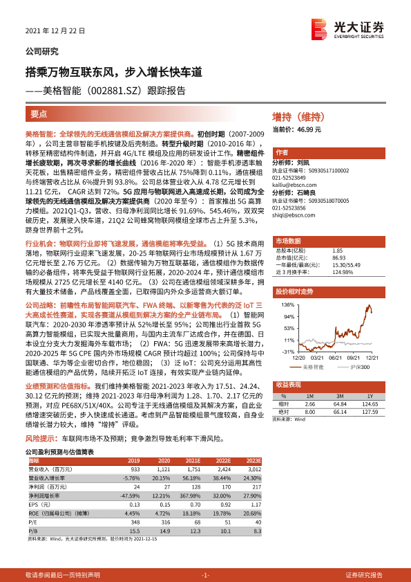 【光大证券】【20211222】搭乘万物互联东风,步入增长快车道——美格智能(002881.SZ)跟踪报告-26页