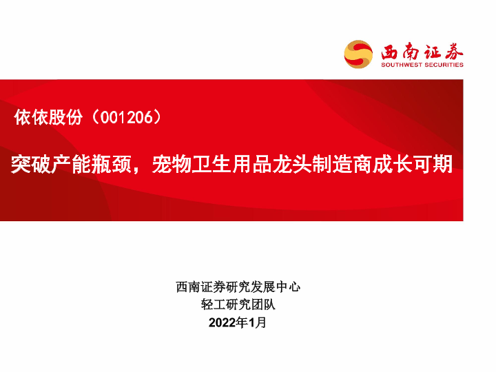 【西南证券】【20220107】突破产能瓶颈,宠物卫生用品龙头制造商成长可期-39页