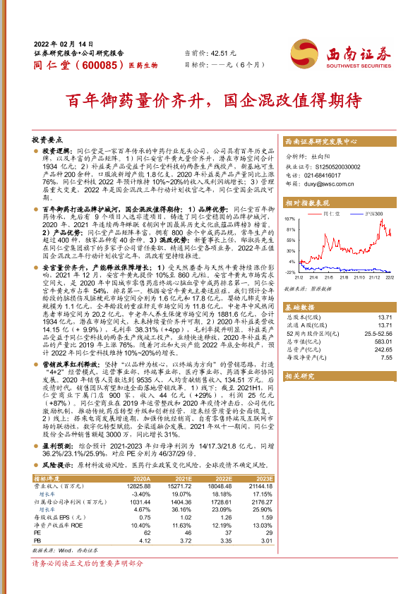 【西南证券】【20220214】百年御药量价齐升,国企混改值得期待-35页