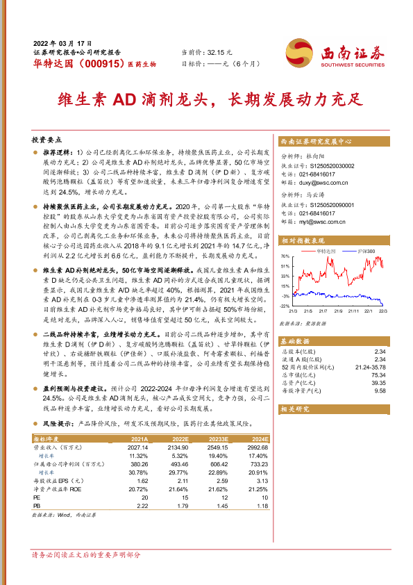 【西南证券】【20220317】华特达因-维生素AD滴剂龙头,长期发展动力充足-21页