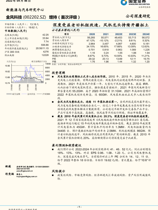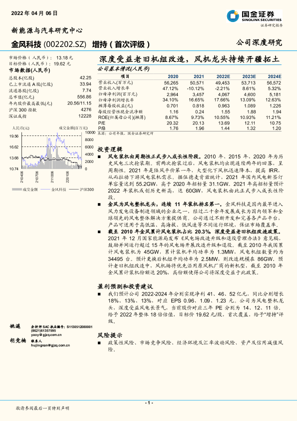 老旧机组改造 风电 金风科技 市场预测 风机龙头