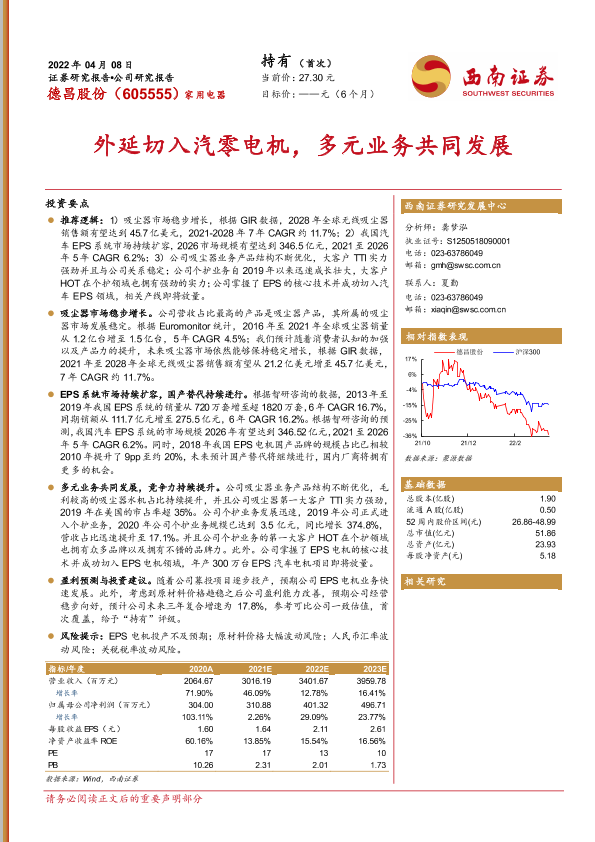 【西南证券】【20220408】外延切入汽零电机,多元业务共同发展-23页