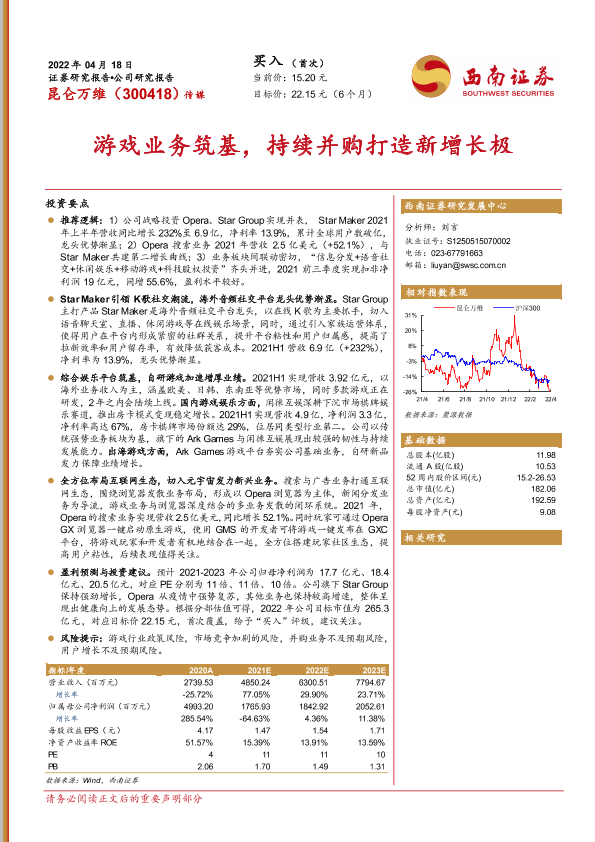 【西南证券】【20220418】20220418-西南证券-昆仑万维-300418.SZ-游戏业务筑基,持续并购打造新增长极-24页