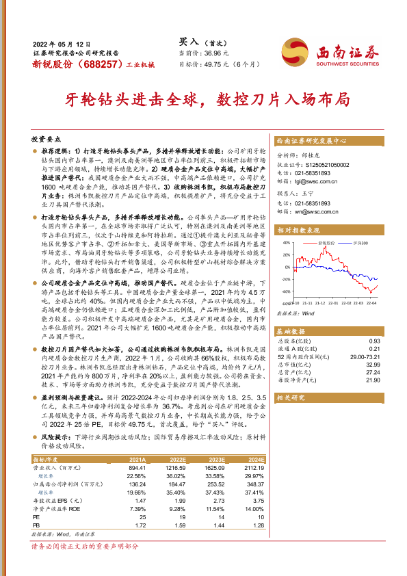 【西南证券】【20220512】新锐股份-牙轮钻头进击全球,数控刀片入场布局-26页