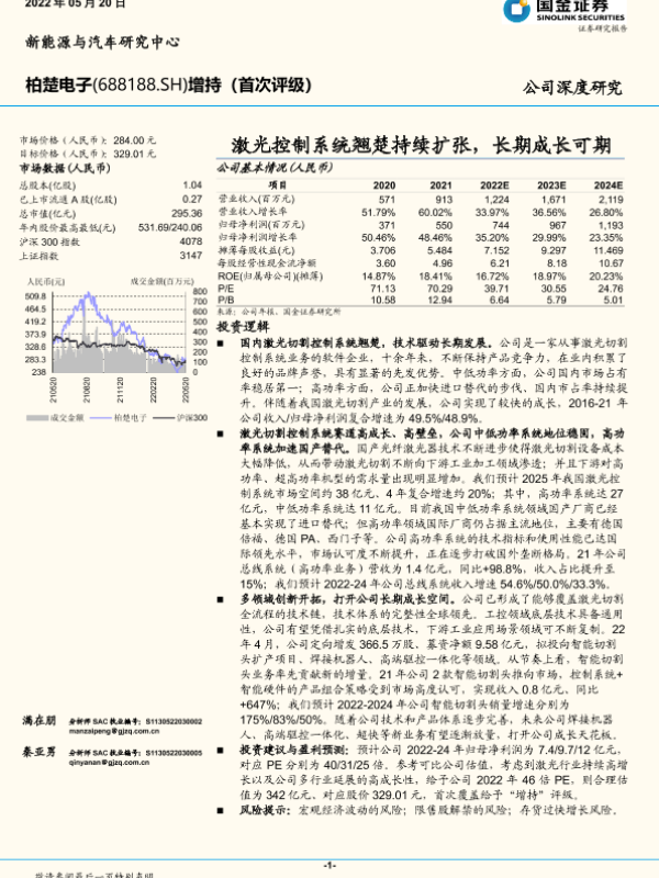 【国金证券】【20220520】20220520-国金证券-柏楚电子-688188.SH-激光控制系统翘楚持续扩张,长期成长可期-18页