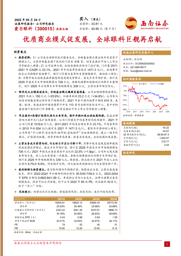 【西南证券】【20220524】优质商业模式促发展,全球眼科巨舰再启航-39页