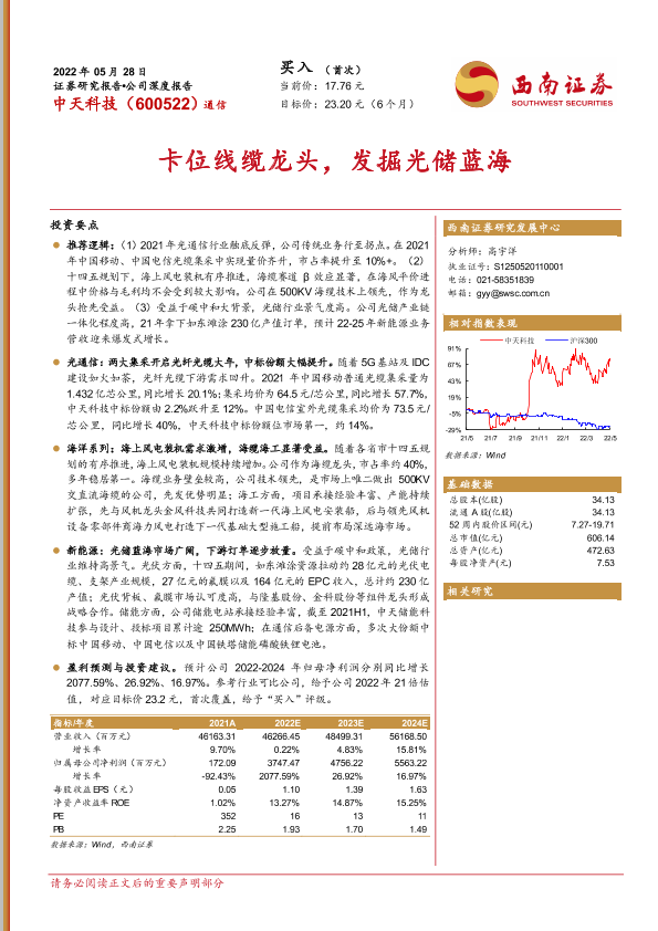 【西南证券】【20220528】20220528-西南证券-中天科技-600522.SH-卡位线缆龙头,发掘光储蓝海-47页