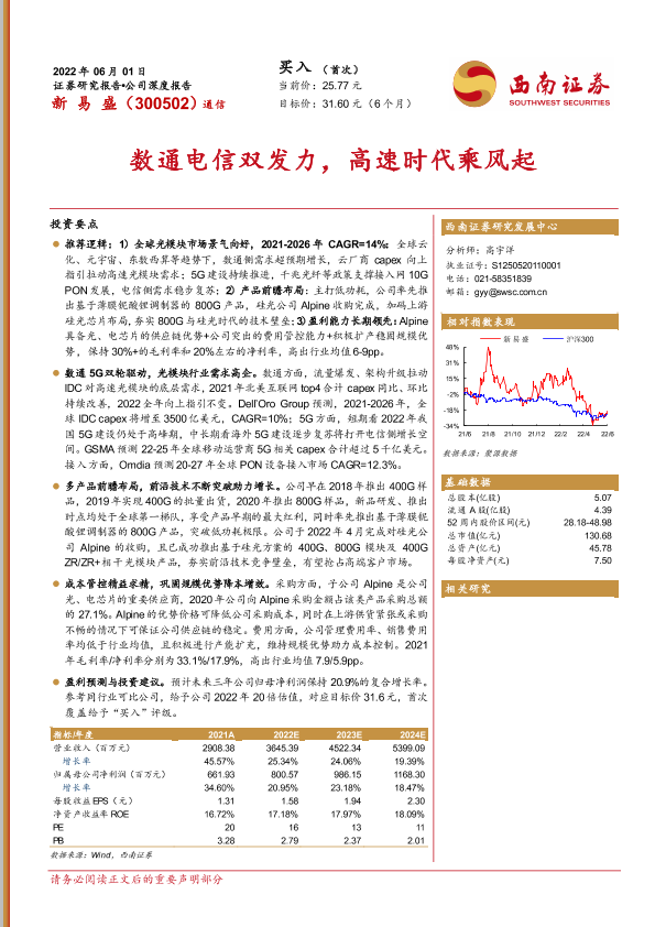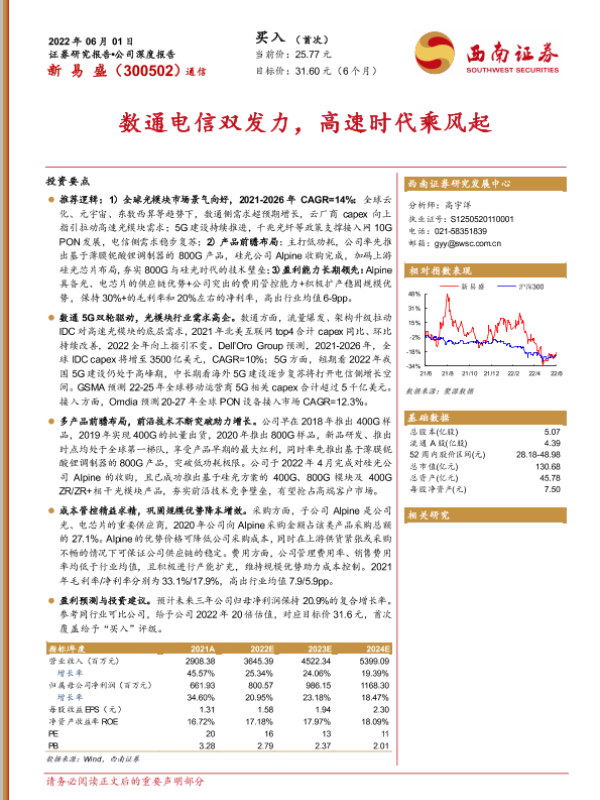 【西南证券】【20220601】数通电信双发力,高速时代乘风起-48页