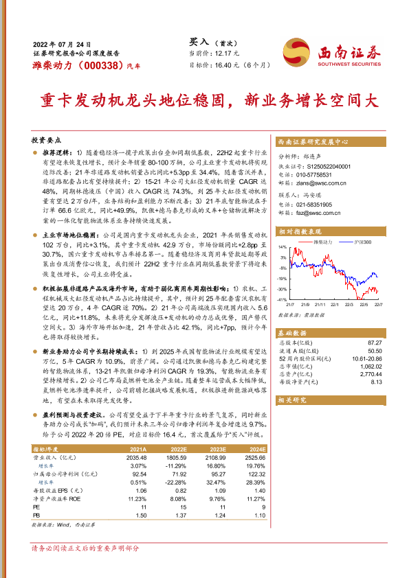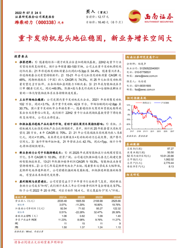 【西南证券】【20220724】20220724-西南证券-潍柴动力-000338.SZ-重卡发动机龙头地位稳固,新业务增长空间大-42页