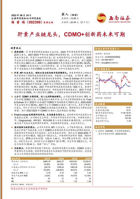 【西南证券】【20220824】20220824-西南证券-海普瑞-002399.SZ-肝素产业链龙头,CDMO+创新药未来可期-32页
