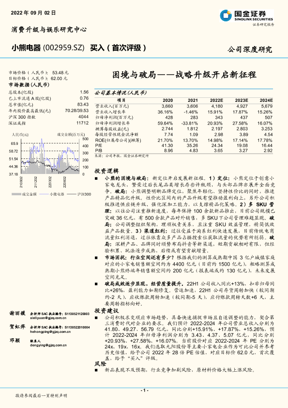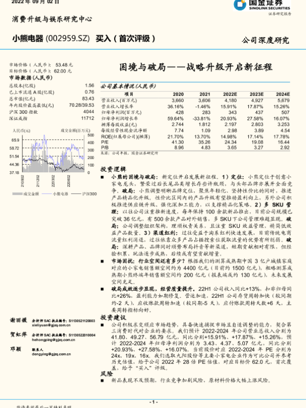 渠道变革 财务预测 战略升级 小熊电器 小家电市场