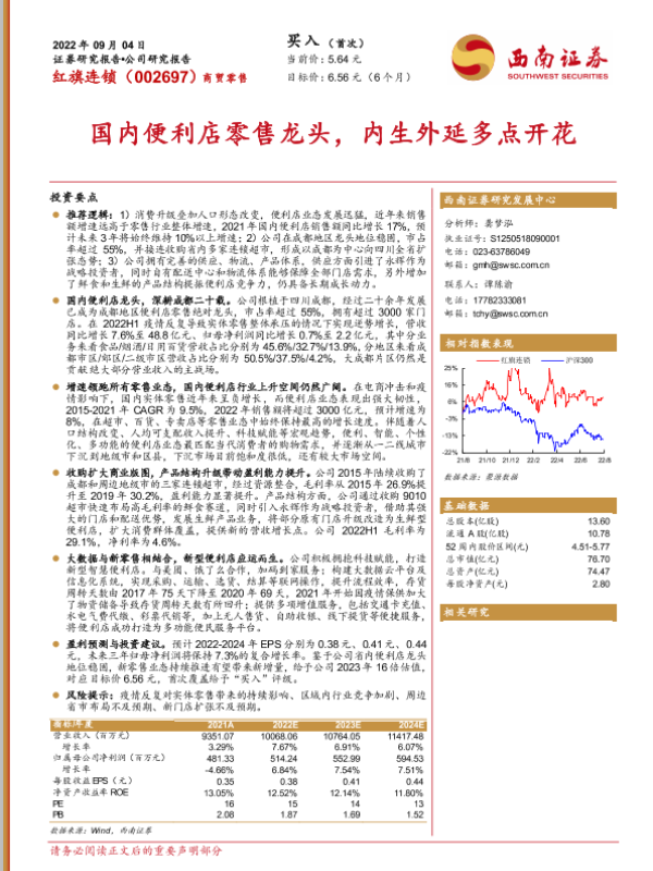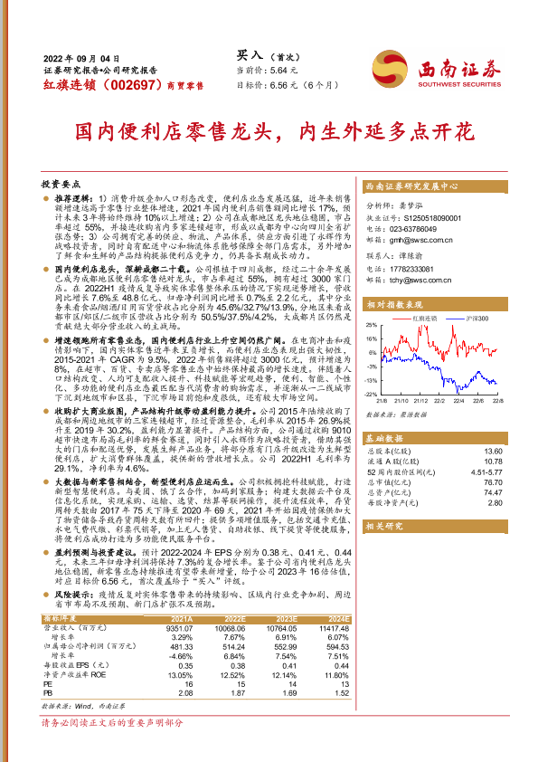 西南证券 零售行业 红旗连锁 便利店 内生外延