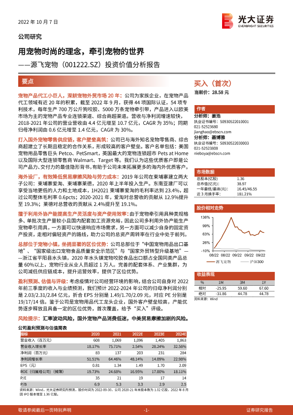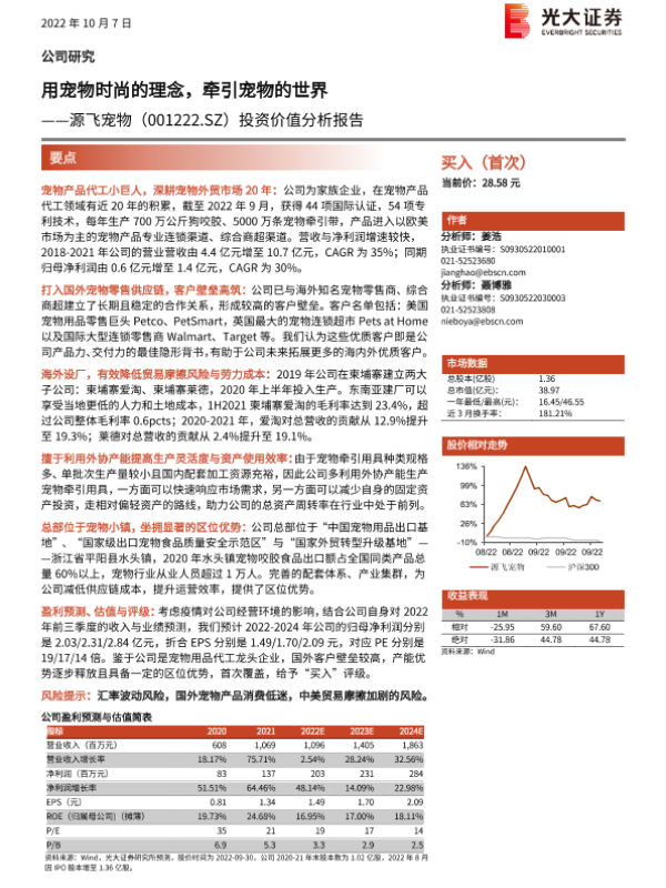 【光大证券】【20221007】用宠物时尚的理念,牵引宠物的世界——源飞宠物(001222.SZ)投资价值分析报告-47页