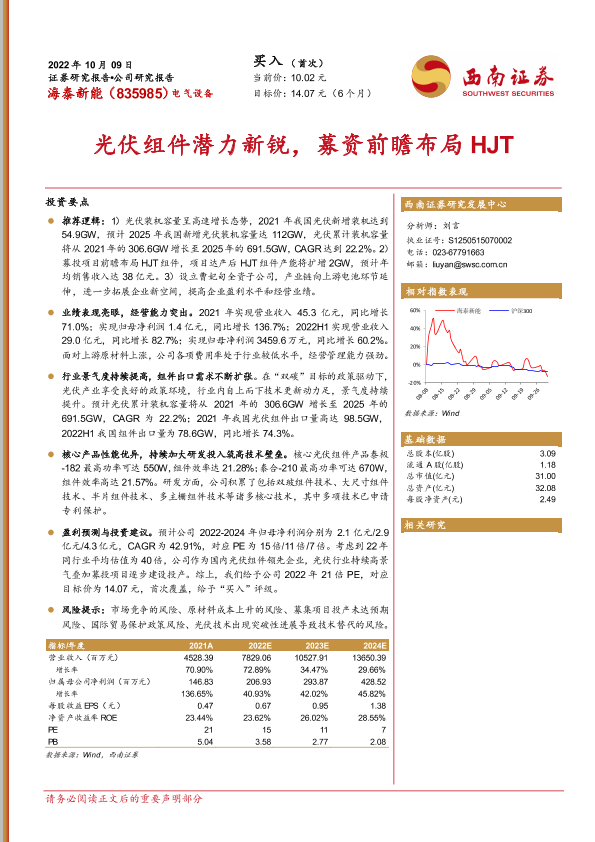 【西南证券】【20221009】光伏组件潜力新锐,募资前瞻布局HJT-29页