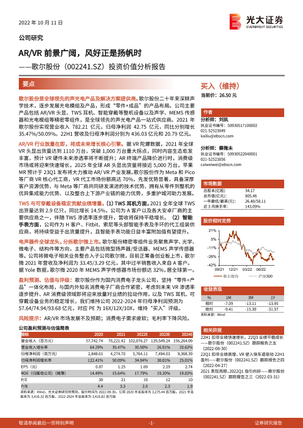 【光大证券】【20221011】20221011-光大证券-歌尔股份-002241.SZ-投资价值分析报告:AR VR前景广阔,风好正是扬帆时-50页