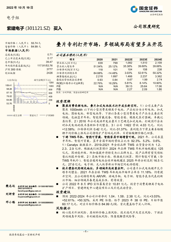 【国金证券】【20221019】紫建电子-301121.SZ-叠片专利打开市场,多领域布局有望多点开花-26页