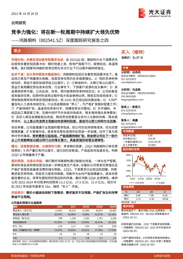 【光大证券】【20221020】竞争力强化:将在新一轮周期中持续扩大领先优势——鸿路钢构(002541.SZ)深度跟踪研究报告之四-22页
