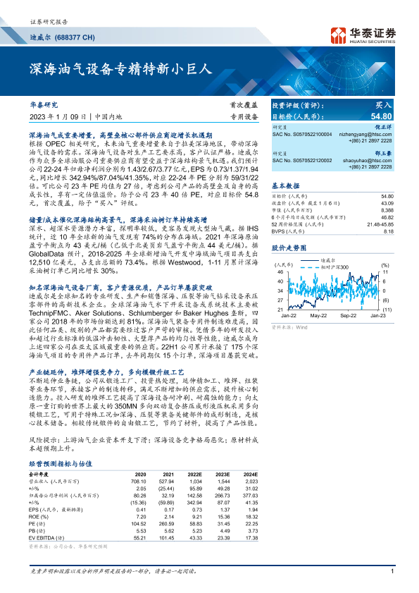 【华泰证券】【20230109】迪威尔(688377 CH)深海油气设备专精特新小巨人-24页