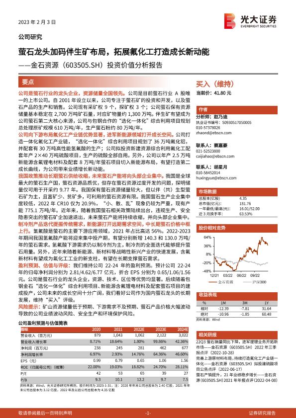 【光大证券】【20230203】金石资源(603505.SH)投资价值分析报告:萤石龙头加码伴生矿布局,拓展氟化工打造成长新动能-41页