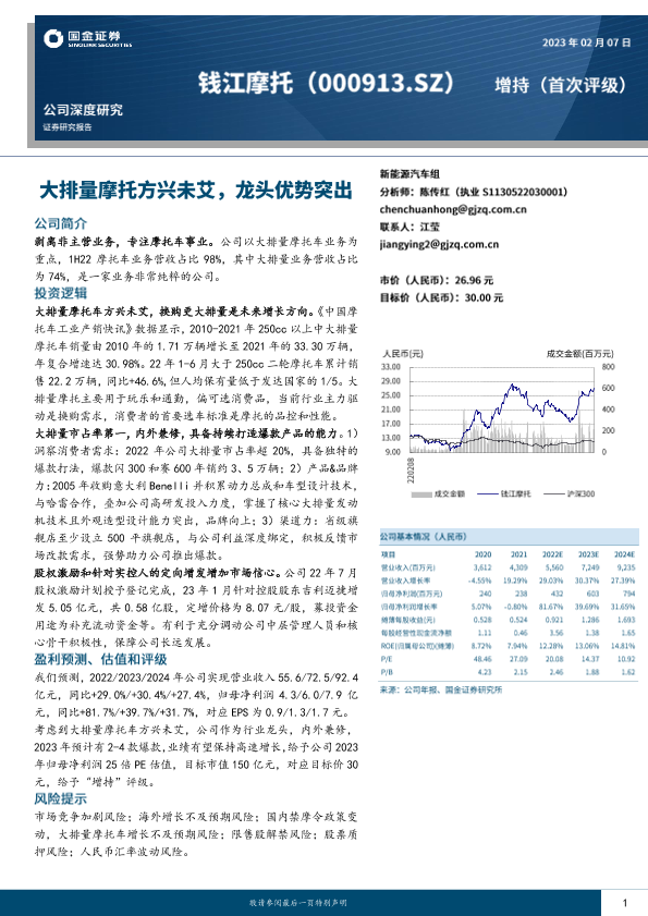 【国金证券】【20230207】国金证券-钱江摩托-000913.SZ-大排量摩托方兴未艾,龙头优势突出-27页