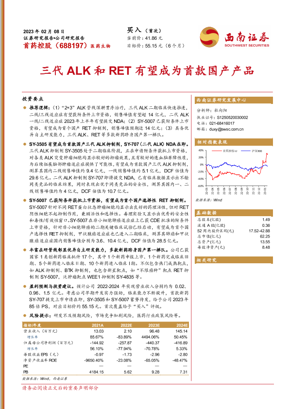 【西南证券】【20230208】20230208-西南证券-首药控股-688197.SH-三代ALK和RET有望成为首款国产产品-30页