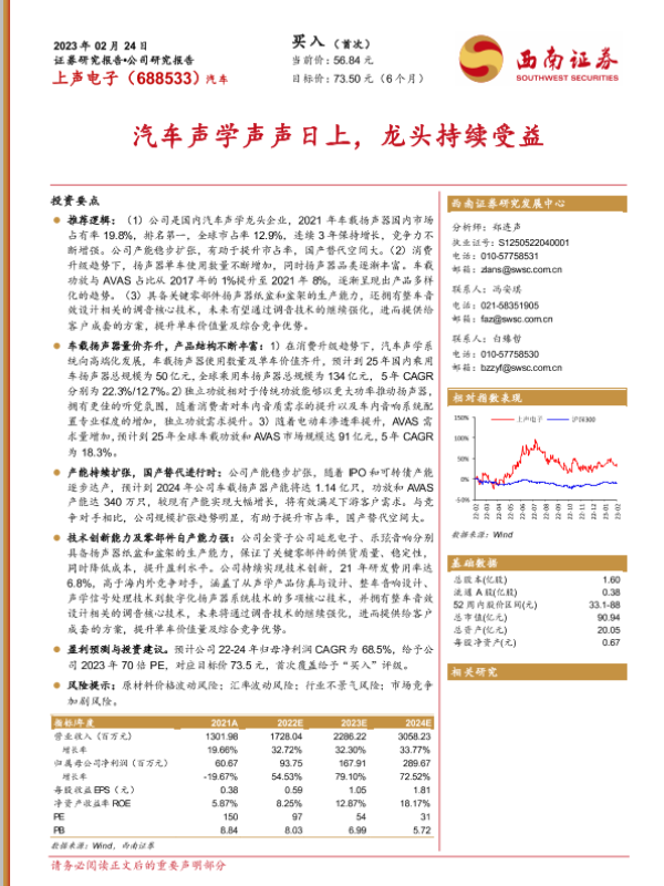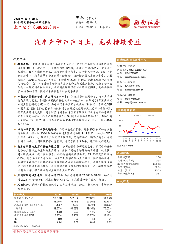 【西南证券】【20230224】20230224-西南证券-上声电子-688533.SH-汽车声学声声日上,龙头持续受益-32页