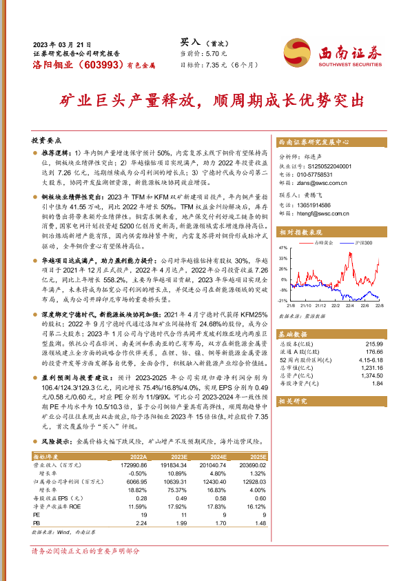 【西南证券】【20230321】矿业巨头产量释放,顺周期成长优势突出-23页