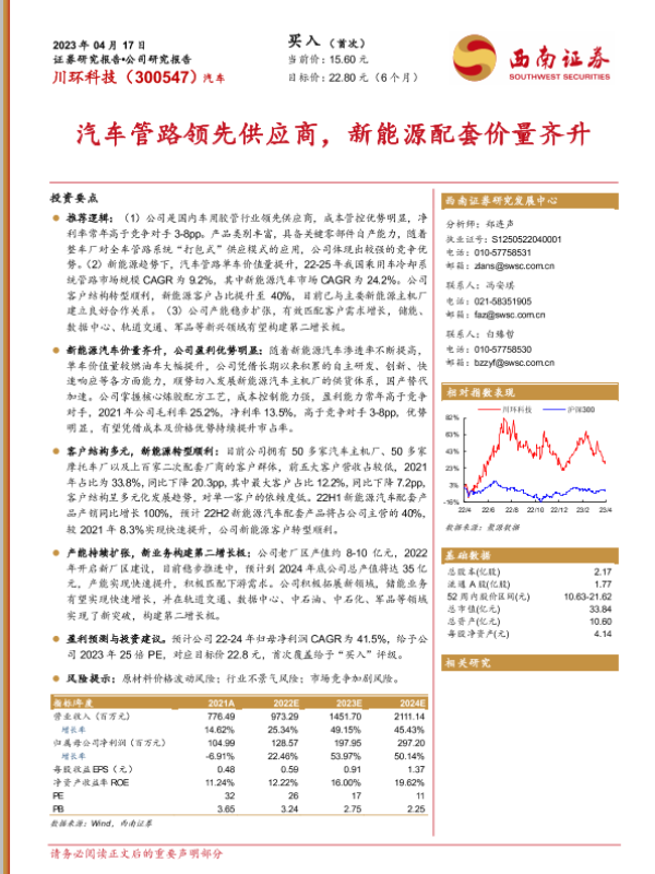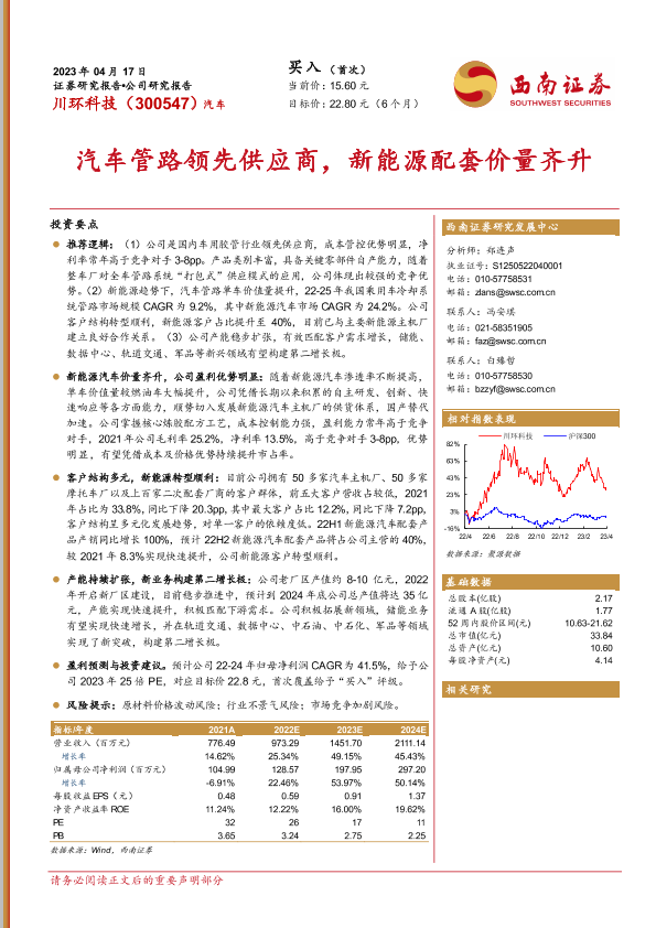 【西南证券】【20230417】川环科技-300547.SZ-汽车管路领先供应商,新能源配套价量齐升-29页