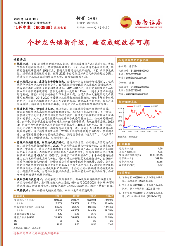 【西南证券】【20230419】20230419-西南证券-飞科电器-603868.SH-个护龙头焕新升级,破茧成蝶改善可期-23页