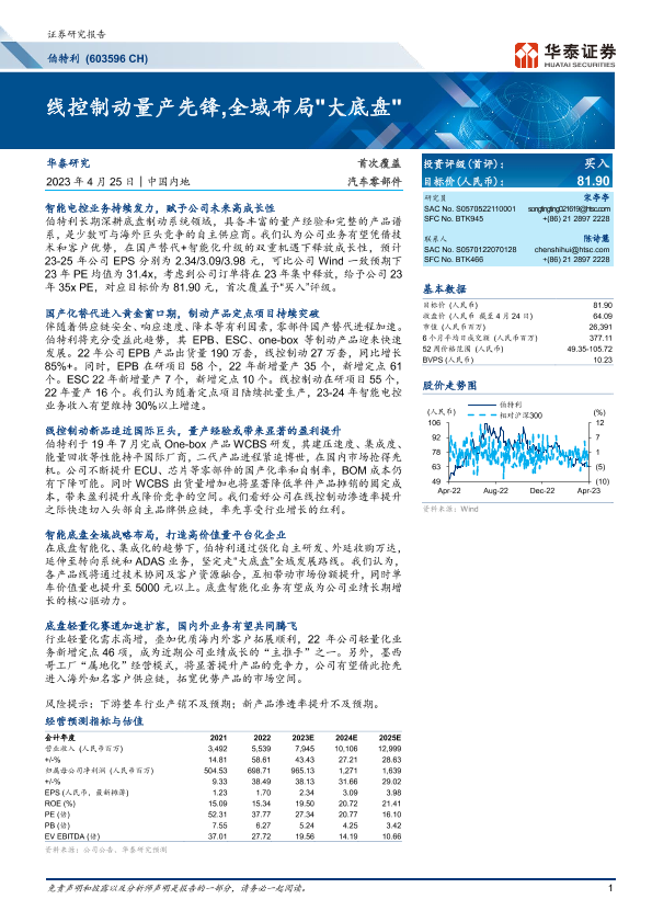 【华泰证券】【20230425】线控制动量产先锋,全域布局大底盘-32页