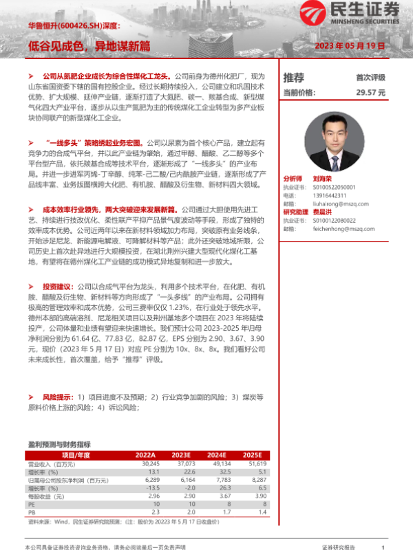【民生证券】【20230519】20230519-民生证券-华鲁恒升-600426.SH-深度:低谷见成色,异地谋新篇-43页