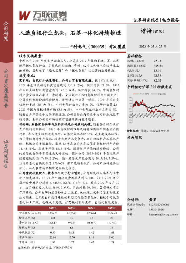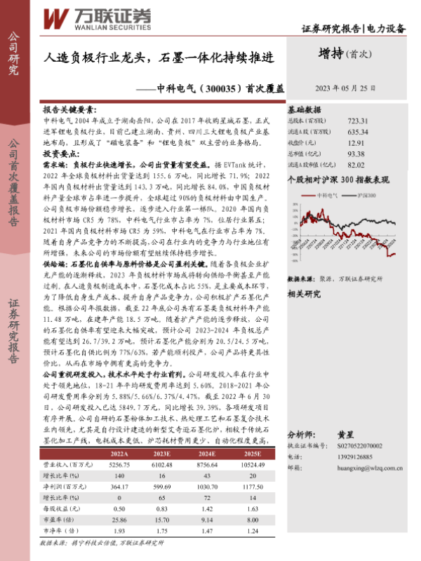 【万联证券】【20230525】20230525-万联证券-中科电气-300035.SZ-首次覆盖:人造负极行业龙头,石墨一体化持续推进-25页
