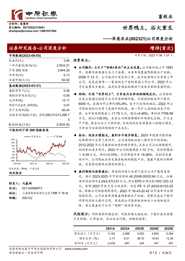 【中原证券】【20230607】20230607-中原证券-华英农业-002321.SZ-公司深度分析:世界鸭王,浴火重生-24页