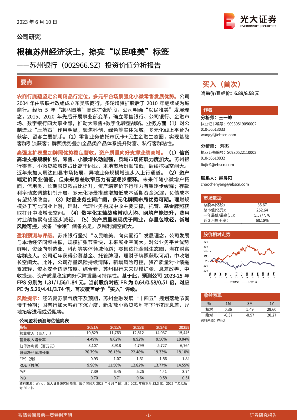 【光大证券】【20230610】根植苏州经济沃土,擦亮“以民唯美”标签——苏州银行(002966.SZ)投资价值分析报告-34页