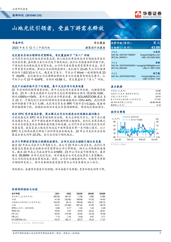 【华泰证券】【20230612】能辉科技-301046.SZ-山地光伏引领者,受益下游需求释放-26页