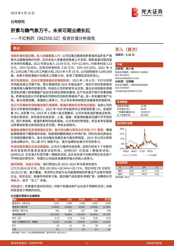 【光大证券】【20230615】肝素与酶气象万千,未来可期业绩长红——千红制药(002550.SZ)投资价值分析报告-36页