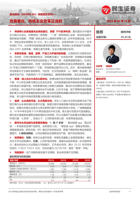 【民生证券】【20230616】20230616-民生证券-晨光股份-603899.SH-深度报告系列一:改易更化,传统主业变革正当时-41页
