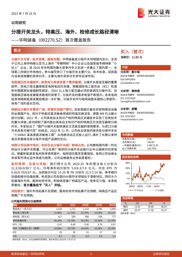 【光大证券】【20230725】分接开关龙头,特高压、海外、检修成长路径清晰——华明装备(002270.SZ)首次覆盖报告-18页