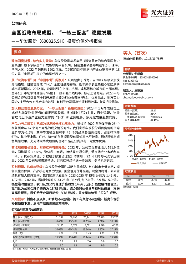 【光大证券】【20230731】20230731-光大证券-华发股份-600325.SH-投资价值分析报告:全国战略布局成型,“一核三配套”稳健发展-36页