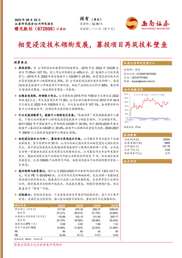 【西南证券】【20230802】相变浸没技术领衔发展,募投项目再筑技术壁垒-27页