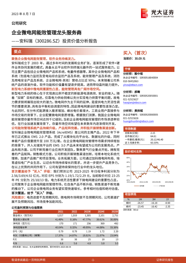 【光大证券】【20230807】20230807-光大证券-安科瑞-300286.SZ-投资价值分析报告:企业微电网能效管理龙头服务商-33页