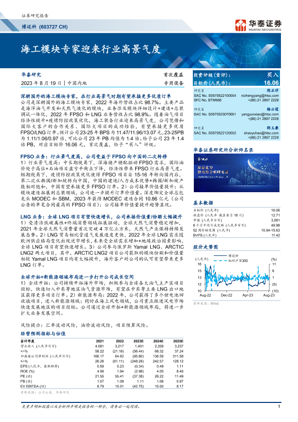 【华泰证券】【20230819】博迈科(603727 CH)海工模块专家迎来行业高景气度-27页