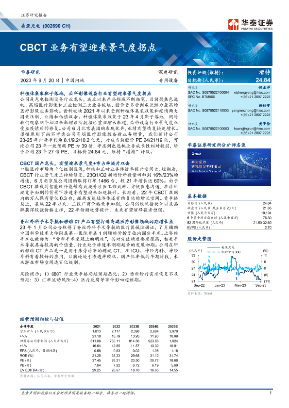 【华泰证券】【20230920】美亚光电(002690 CH) CBCT业务有望迎来景气度拐点-33页