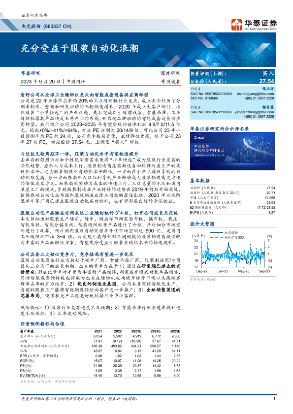 【华泰证券】【20230920】杰克股份(603337 CH)充分受益于服装自动化浪潮-27页