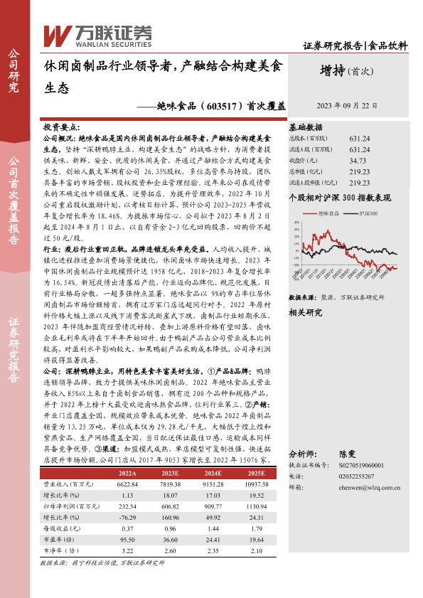 【万联证券】【20230922】20230922-万联证券-绝味食品-603517.SH-首次覆盖:休闲卤制品行业领导者,产融结合构建美食生态-35页